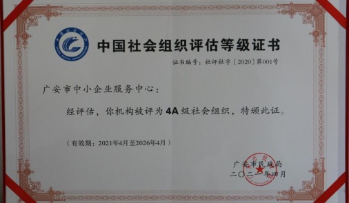 5月31日,廣安市2020年度全市性社會組織等級評估授牌儀式在廣安市民政局舉行。全市共21個社會組織獲得授牌,其中5A級1個、4A級5