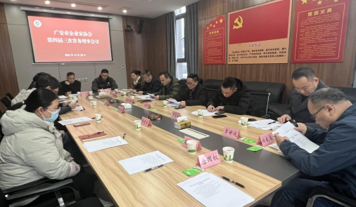 12月28日下午,廣安市企業(yè)家協(xié)會(huì)第四屆三次常務(wù)理事會(huì)議在我市工業(yè)信息化服務(wù)平臺(tái)順利召開,協(xié)會(huì)會(huì)長(zhǎng)、副會(huì)長(zhǎng)、常務(wù)理事、監(jiān)事參