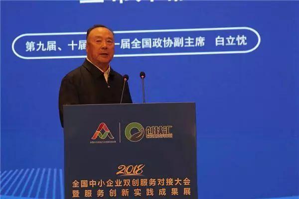 第九屆、十屆、十一屆全國政協(xié)副主席白立忱出席會議并宣布2018全國中小企業(yè)雙創(chuàng)服務(wù)對接大會暨服務(wù)創(chuàng)新實踐成果展開幕