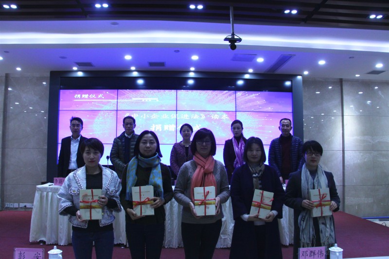 會議現(xiàn)場舉行了捐贈儀式,成都市企業(yè)代表獲贈《中小企業(yè)促進(jìn)法》讀本。