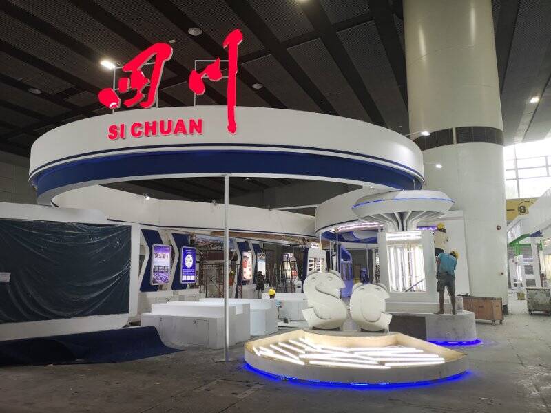 目前,四川展館正在緊鑼密鼓的籌備布展中。