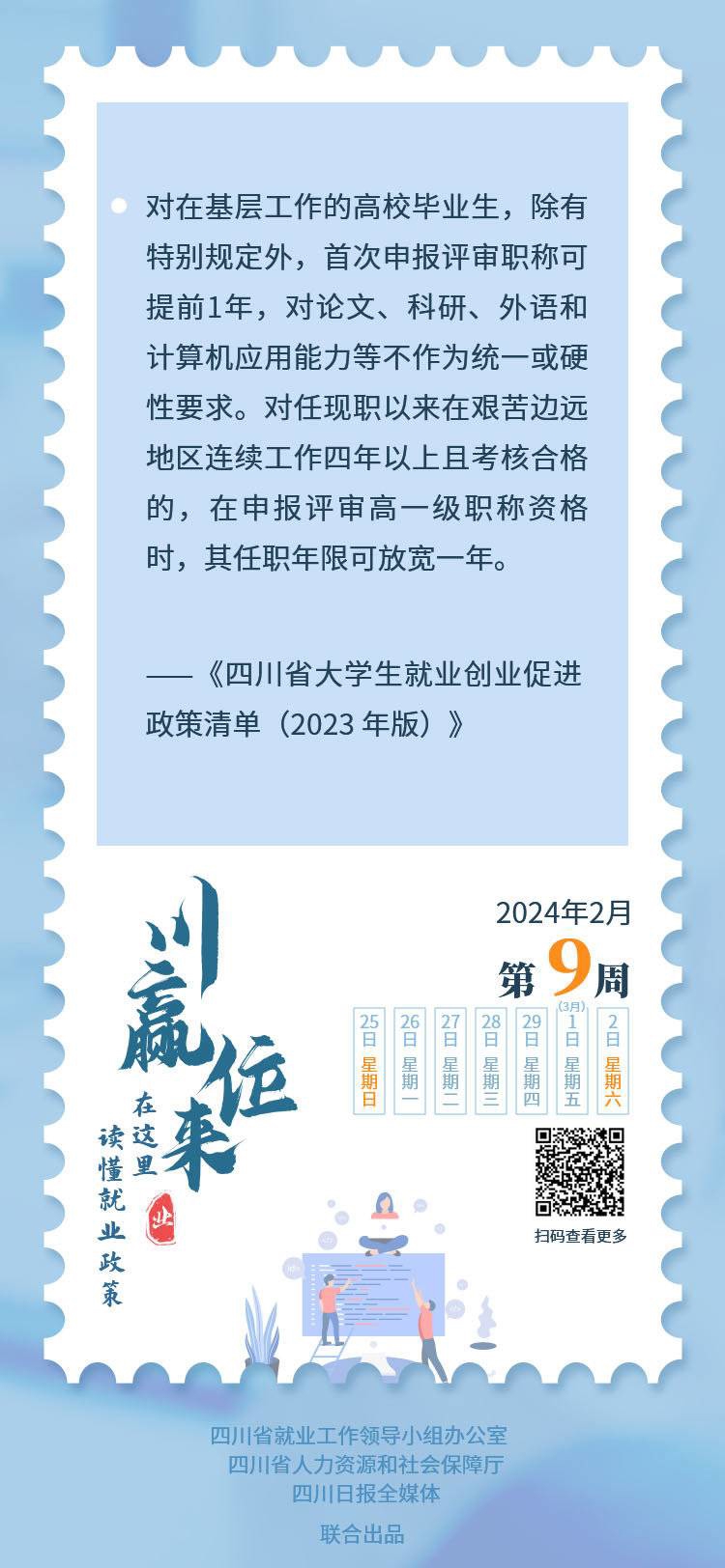 為引導(dǎo)和鼓勵高校畢業(yè)生到基層就業(yè),優(yōu)化服務(wù)保障,為高校畢業(yè)生在基層成長成才創(chuàng)造良好條件,近年來國家和省先后出臺多項優(yōu)惠政策。由省就業(yè)工作領(lǐng)導(dǎo)小組辦公室會同省級相關(guān)部門匯總編輯的《四川省大學(xué)生就業(yè)創(chuàng)業(yè)促進政策清單(2023年版)》,對這些優(yōu)惠政策進行了梳理。本期“川贏位來·就業(yè)政策周歷”,我們一起來分享這些相關(guān)政策。