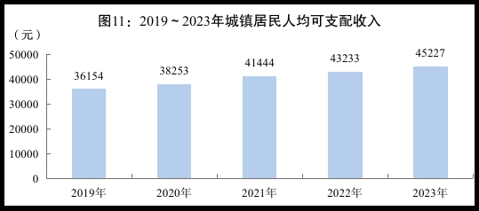 2023年四川城鄉(xiāng)居民收入差距繼續(xù)縮小。公報顯示,2023年全年全體居民人均可支配收入32514元,比上年增長6.0%。按常住地分,城鎮(zhèn)居民人均可支配收入45227元,比上年增長4.6%;農(nóng)村居民人均可支配收入19978元,比上年增長7.0%。城鎮(zhèn)居民人均消費支出29280元,增長5.9%;農(nóng)村居民人均消費支出17901元,增長4.1%。