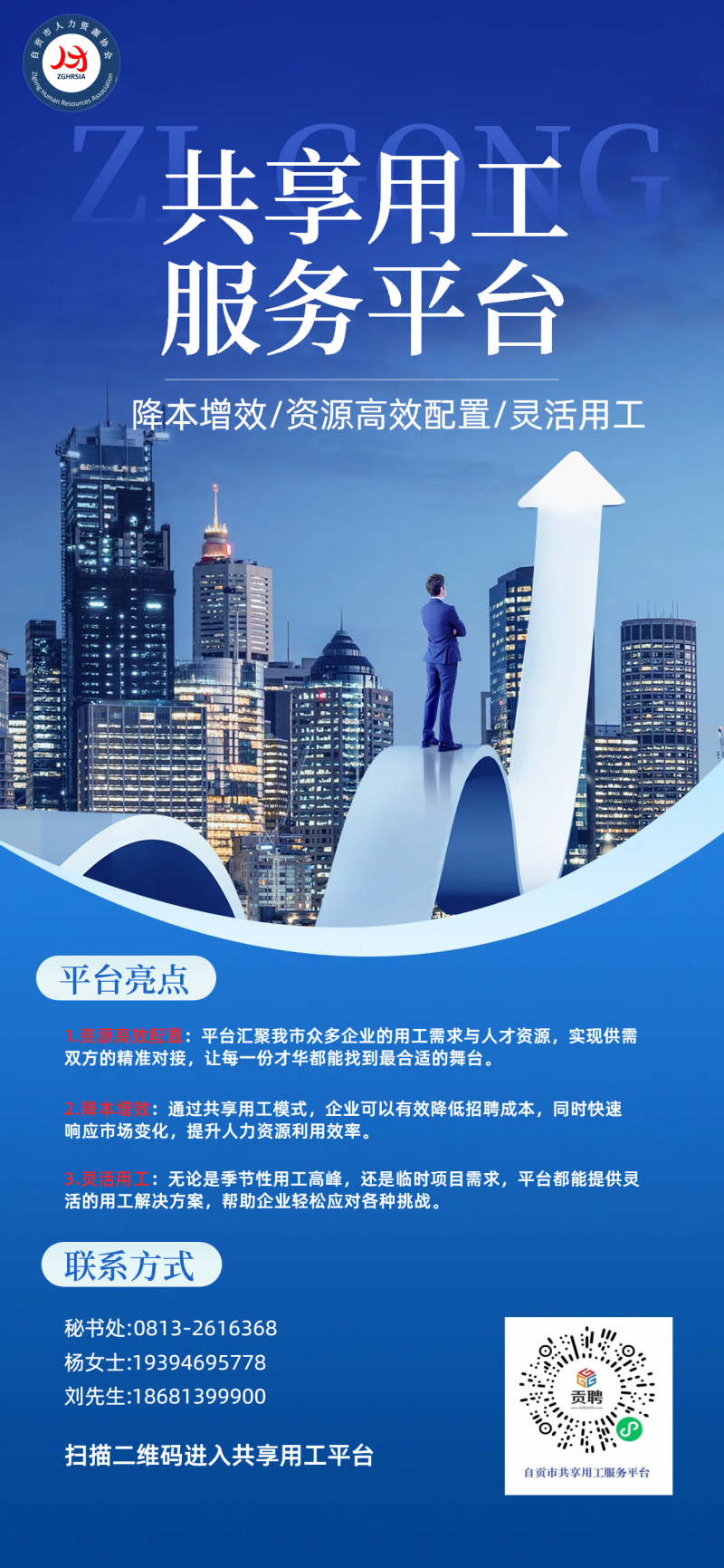 為進一步響應自貢市企業(yè)對于靈活用工的迫切需求,優(yōu)化人力資源配置,提升用工效率,特別是針對彩燈、文旅、制造業(yè)、服務業(yè)等行業(yè)季節(jié)性用工波動大的特點,自貢市就業(yè)創(chuàng)業(yè)促進中心在廣泛調研與精心籌備的基礎上,攜手自貢市人力資源協(xié)會,成功構建了自貢市共享用工服務平臺。