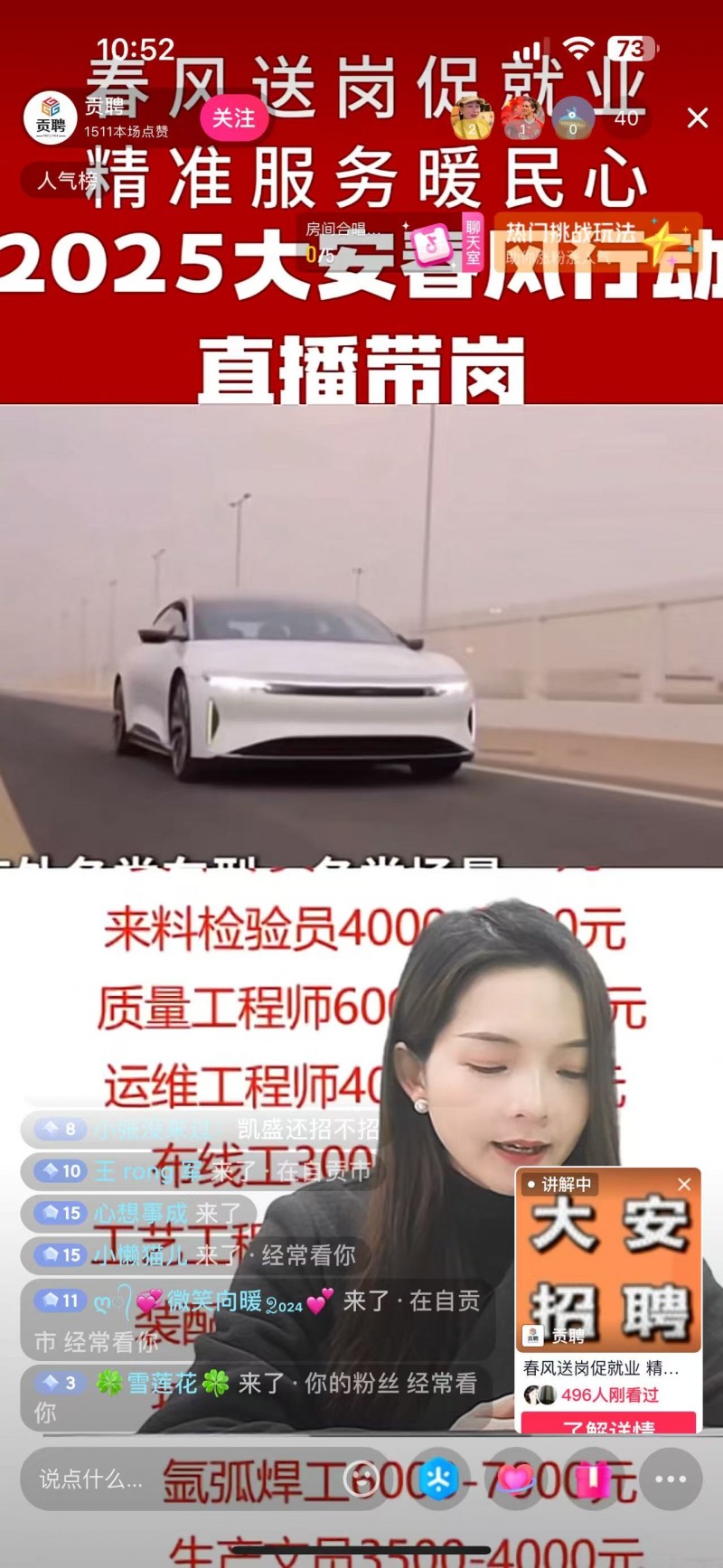 本次線上直播帶崗活動是大安區(qū)“春風(fēng)行動”的重要組成部分,旨在為求職者提供更加便捷的就業(yè)服務(wù)。活動通過抖音平臺同步直播,吸引了大量求職者在線觀看。直播現(xiàn)場,主播詳細(xì)介紹企業(yè)文化和崗位需求,同時解答求職者的疑問,讓求職者足不出戶就能了解崗位信息。