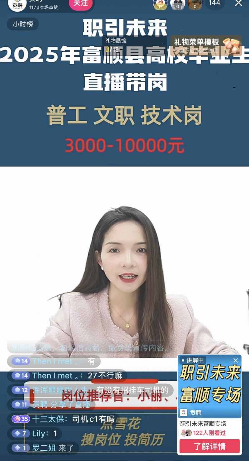 近日,富順縣聚焦高校畢業(yè)生就業(yè)需求,創(chuàng)新打造的"職引未來——2025年高校畢業(yè)生直播帶崗"專項活動圓滿結束?;顒油ㄟ^"直播探崗+云端互動"模式,累計開展2期線上招聘會,共吸引26681人次在線關注,為畢業(yè)生與用人單位搭建起精準對接的數(shù)字化橋梁。